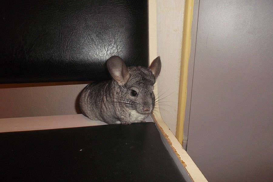 prodám samečka činčily (barevná varianta white ebony) stáří 5 let. Zvyklý na ruku, ale není úplně ochočený. Je zvyklý na běžný ruch domácnosti i cestování.