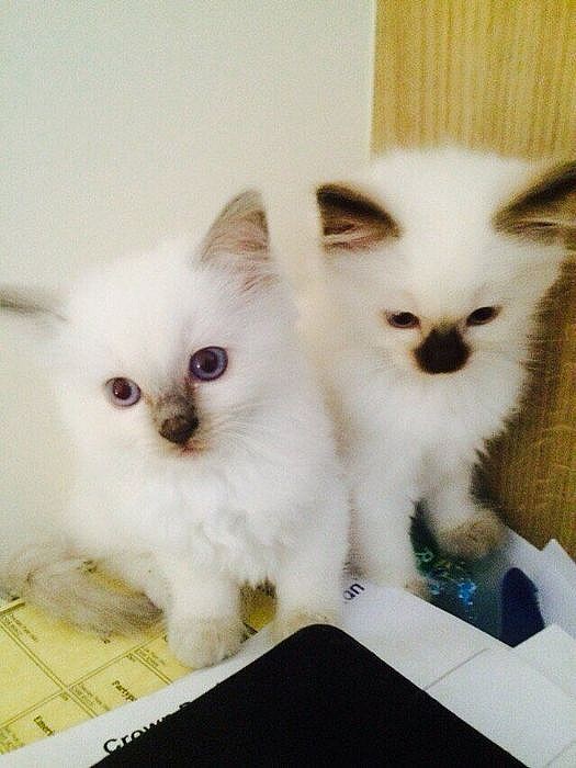 Dvě britská koťata bez PP, obě holčičky. První krátkosrstá bílá colorpoint s modrýma očima, druhá krátkosrstá červená s kresbou. Máme z nich radost, neboť jde...