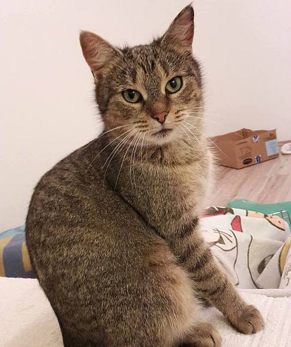 Asi 1-2 roky stará kočka, k cizím lidem opatrná, ale bude to hodná holka, kastrovaná, ošetřená proti parazitům. Tel.: 777214680