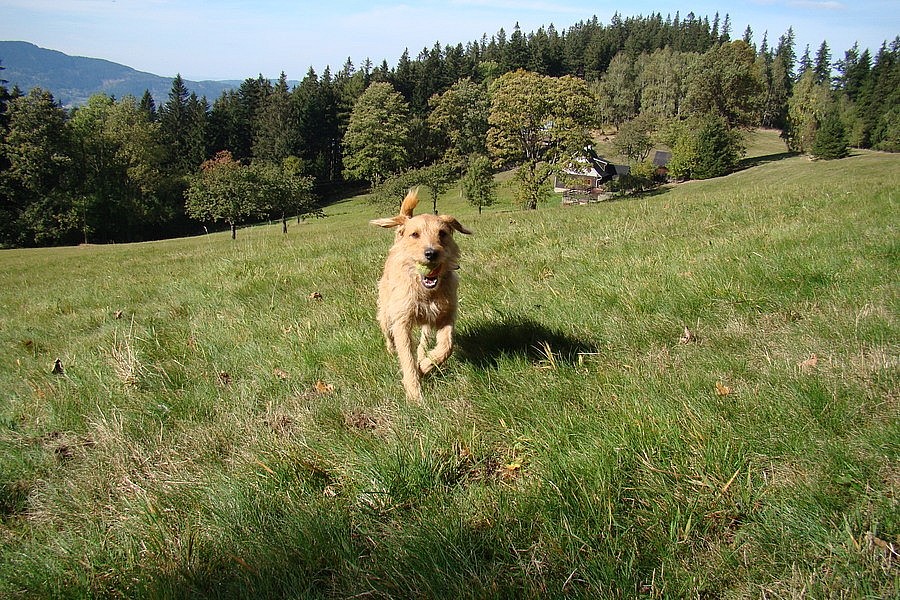 Jmenuji se Bendži. Mám dva roky. Jsem pořád hravý jako štěně. Jako malý jsem byl v útulku, mám všechny znaky irského teriéra. Jsem středně velký, vážím 12kg. Jsem rošťák, hravý, temperamentní, společenský. Miluju přítomnost lidí, pohyb a hru. Rád se tulím a mazlím. Mám rád vlídný přístup a trpělivost. Hodím se k hodným lidem, dětem a díky své energičnosti na zahrádku. Pokud bych byl v bytě, budu potřebovat delší procházky na vyběhání a vyblbnutí. Taky jsem dobrým hlídačem. Jsem hodný, milující pes.