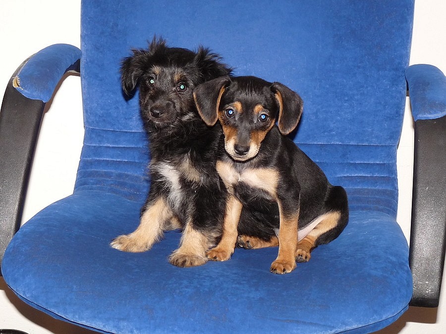Darujeme za odvoz štěňátka, kříženci, hladká fena, chlupatý pes, v dospělosti velikost jezevčíka, Kamenná okr. Šumperk