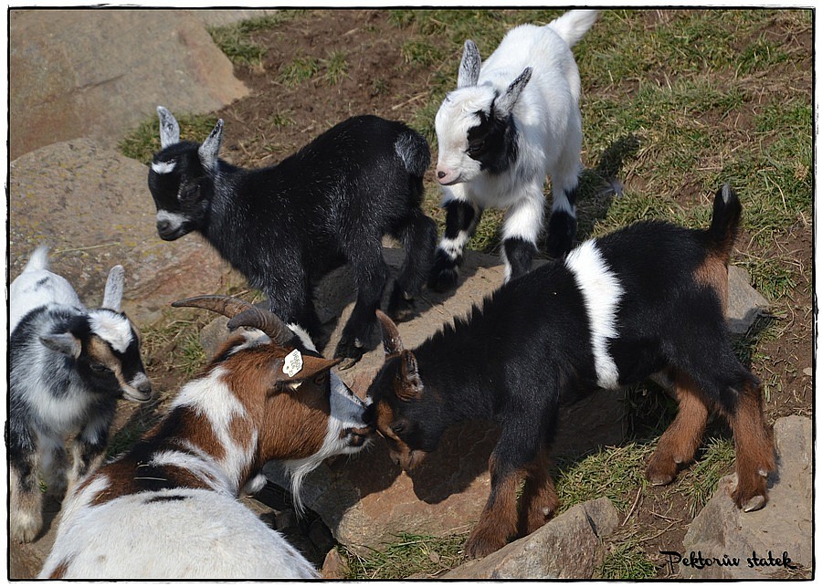 Nabízíme k zadání únorové odchovy černobílých i tříbarevných minikůzlátek. K odběru od poloviny května 2016. Dlouholetý, registrovaný, kvalitní chov. Otec i matky kůzlat jsou malého vzrůstu, klidných povah. S chovem i registrací hospodářství rádi poradíme. Zdravá a vitální kůzlata z podhůří Šumavy, budou vhodná k chovu, na spásání zarostlých zahrad, na ozdobu pozemku, i na mazlení a výchovu mladých chovatelů. Kupní smlouva a záloha při rezervaci samozřejmostí. Cena od 1000,- do 2500,- dle barvy a pohlaví. www.pektoruvstatek.estranky.cz