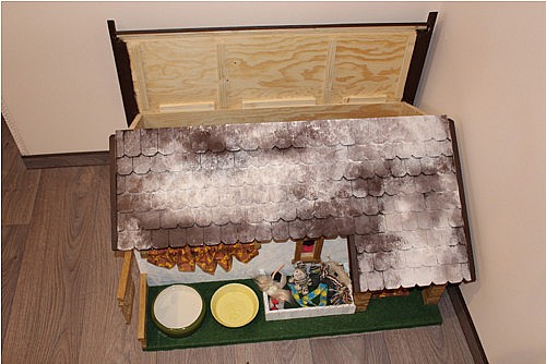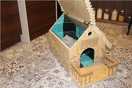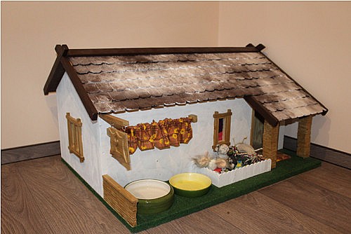 Vyrobeno s překližky. Lepeno nezávadným lepidlem pro zvířata. Rozměry-šířka a výška 30 cm, hloubka 13 cm. Možnost vyrobit i jiné rozměry. Cena bez plastového wc.