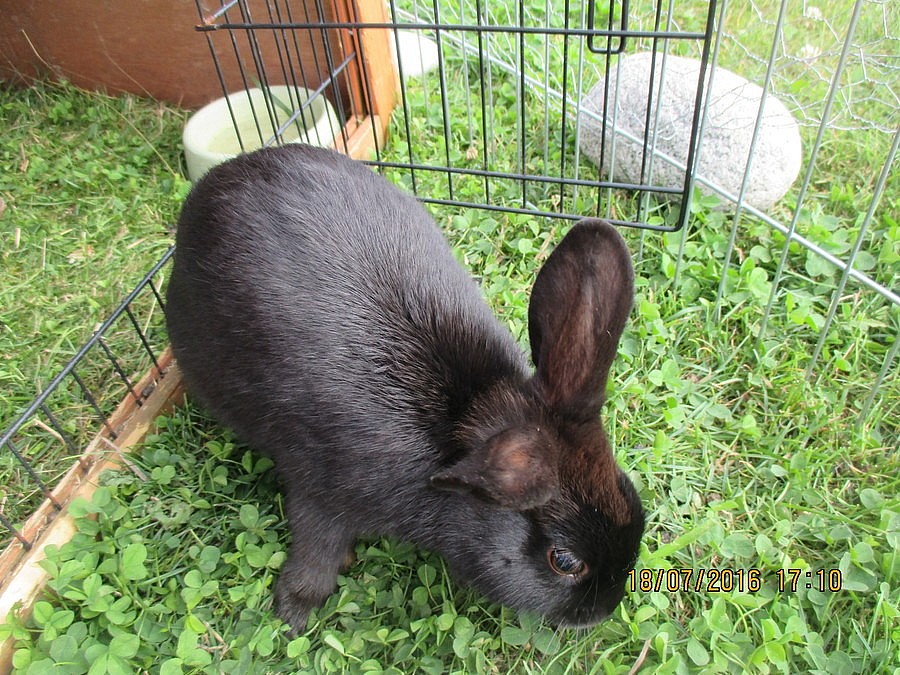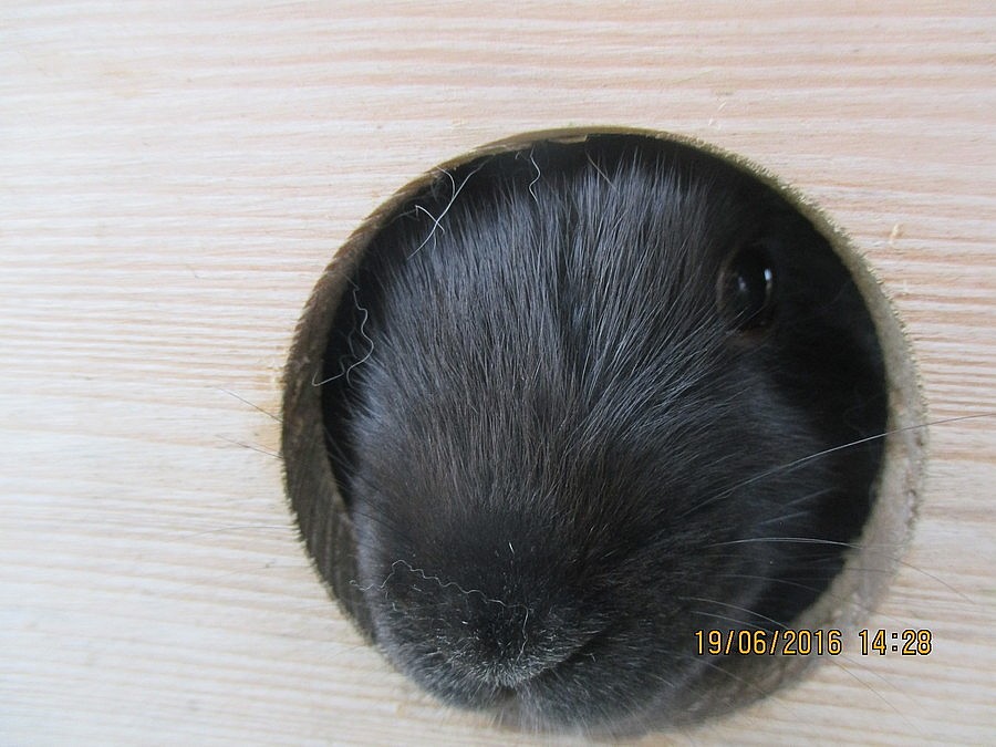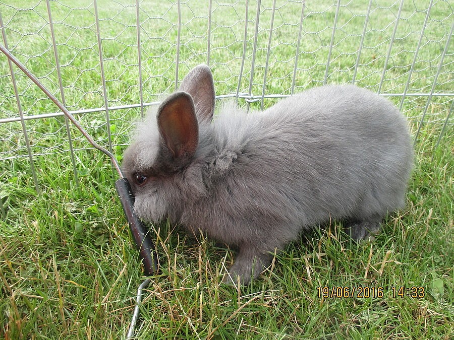 stáří rok a půl, nekastrovaná, po mláďatech, uvolňují ji z chovu z důvodu redukce, je hodná, nekouše, nechá se hladit, chodí na králičí WC, barva modrá perlová,...