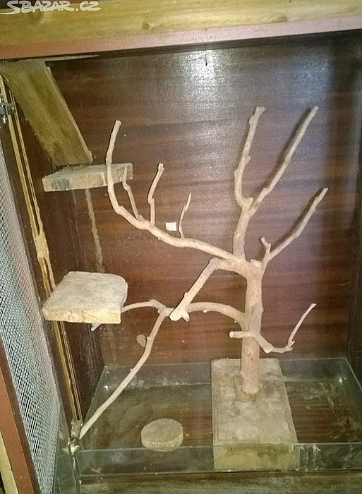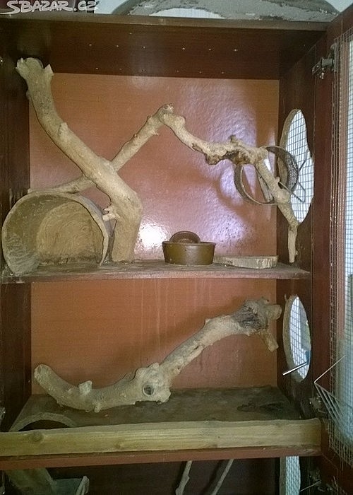 Skříňová voliéra pro osmáky degu. Tato krásná skříňová voliéra je po ,,domácku" vyrobená. Vysoká 2m, široká 1m a hluboká 0,5m. Vybavená větvemi, napáječkou, je v ní i kolotoč a 3 kameninové misky (1 velká, 2 malé). Voliéra nám zbyla po zrušeném chovu osmáků. Možno použít i pro fretku, vakoveverky atd. Cena dle Vaší nabídky, ale min. částka 1.000Kč (částkou podpoříte dobrovolníky azylu pro zvířata Toulavé Tlapky) a je nutno zajistit vlastní odvoz.