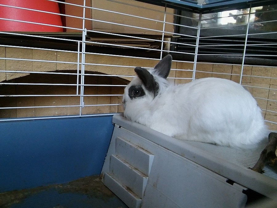 stáří rok a půl, nekastrovaná, po mláďatech, uvolňují ji z chovu z důvodu redukce, je hodná, nekouše, nechá se hladit, chodí na králičí WC, barva modrá perlová,...