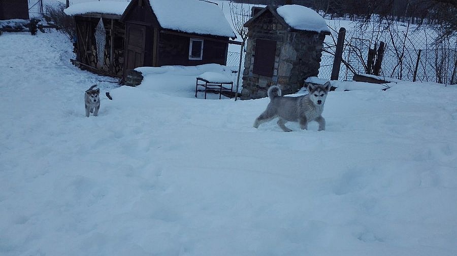 Aljašský malamut. Nabízíme poslední volné štěňátko aljašského malamuta/ fenečka. Čistokrevná, bez PP. Odčervena, očkována, s průkazem. Přišla na svět v noci na 1. Advent. 26.- 27. 11. 2016. Oba rodiče jsou naše lásky - čistokrevní AM bez PP. Odběr ihned. 4.999 Kč.