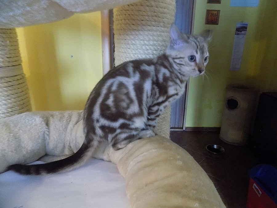 Bengálská kočka - chovatelská stanice Bengi Valern nabízí bengálské kočičky s PP v barvě sněžný mramor, nar. 1.11.2016, jsou očkovaná, opatřená čipem a europasem, odchovaná v bytě. 12.000 Kč.