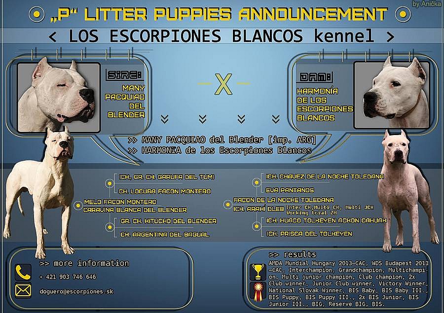 Prodám štěňata argentinské dogy z exkluzívního zahraničního krytí, po špičkových rodičích.