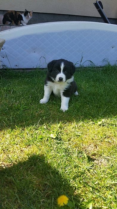 Border kolie - zadám tři štěňátka border kolie bez PP - pejsky. Narozena 18.5., k odběru od 10.7. Všichni tři velmi milí, živí, zdraví, v kontaktu s kočkami i jinými pejsky, zvyklí na domácnost i zahradu. Odčervení, budou očkovaní. Od každého štěněte vkládám 3 fota + foto matky. Samozřejmostí je, že pouze do dobrých rukou :) 5.500 Kč.