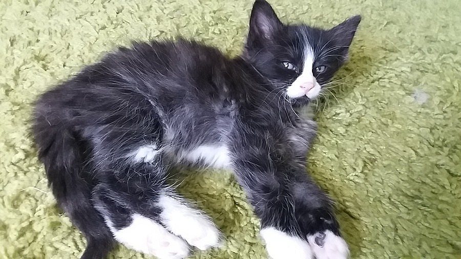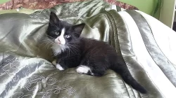 Asi půlroční kocour, hodný, ale v kontaktu s cizími lidmi opatrný, ošetřený proti parazitům, rozvakcinovaný. Tel.: 777214680