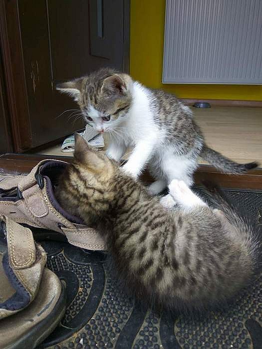 Darujeme koťátka do dobrých rukou. Máme bilo-mourovatou kočičku, kourovaneho kocourka a černo-bileho kocourka. Koťátka jsou hravá, naučená na bedýnku, zvyklá na psy, jsou ráda venku i doma.