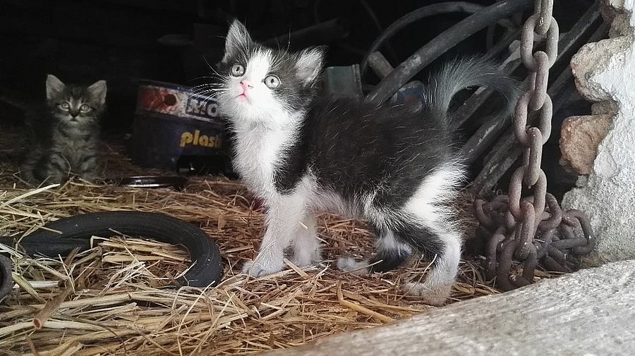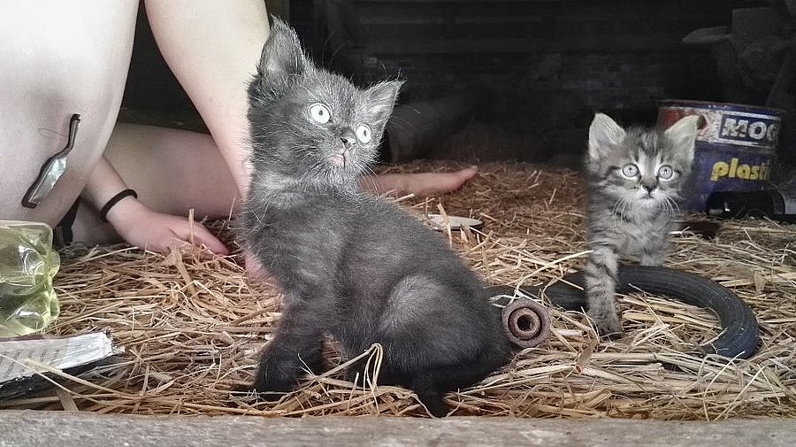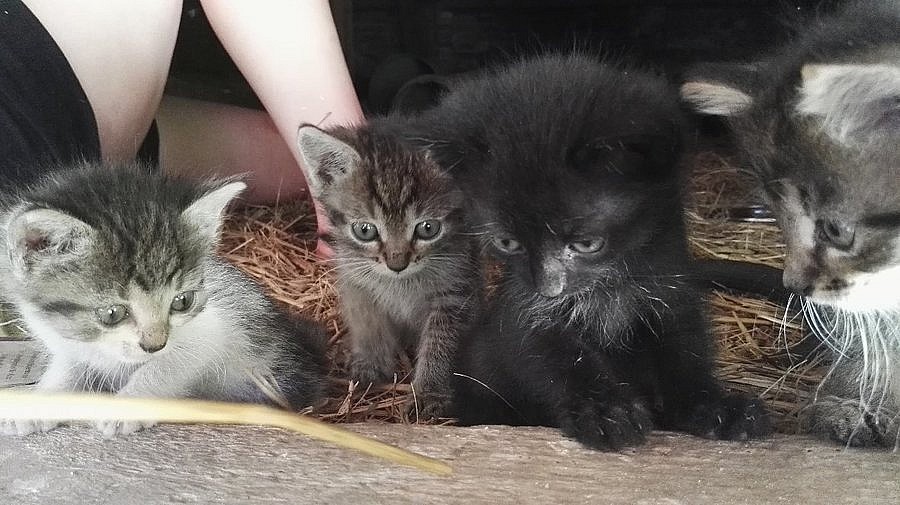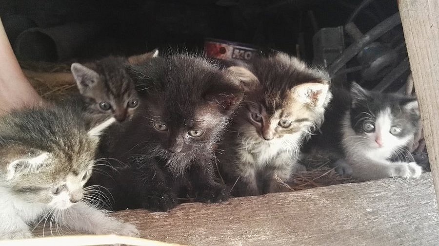 Daruji 5 na půdě nalezených koťat k odběru ihned . kocourci: černý, mouratý a mouratý s trochu delší srstí . Kočičky: bíločerná a bílomouratá