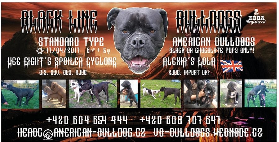Americký buldok štěnátka. Nabízím štěnátka amerického buldoka černé línie, typu standard s PP. Matku, otce, štěňátka možno vidět kdykoliv v Ostravě. Odběr od 1.7.17, očkovaní, odčervení, očipování. Cena dohodou, pouze vážným zájemcum do dobrých rukou. Přes prázdniny ráda pohlídám!