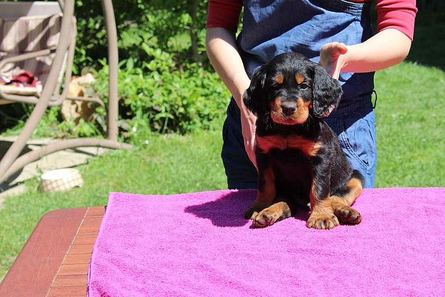 Po zrušené rezervaci se nám uvolnil pejsek gordonsetra Algernon Santini's Legacy narozený 18.4.2017 ze spojení Jch DE, Ch CRO Flynnrock's Flynn a Jch CZ, Ch CZ, SK Al Berta Scotch do pole. Oba rodiče jsou zdraví, zdravotně otestovaní rodiče s výbornými, vyrovnanými povahami. Pejsek je již k odběru. Pro více informací: www.santinislegacy.com