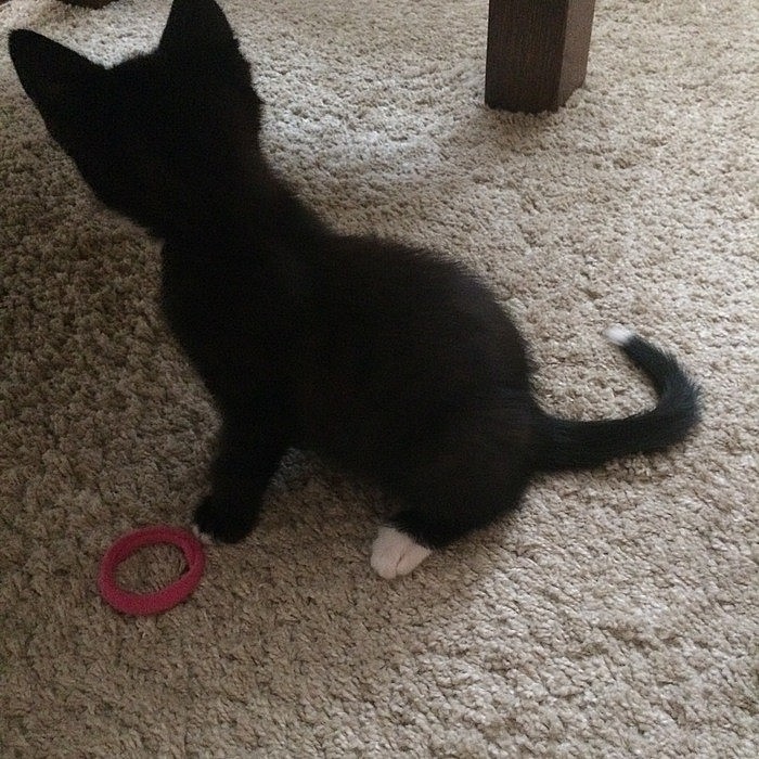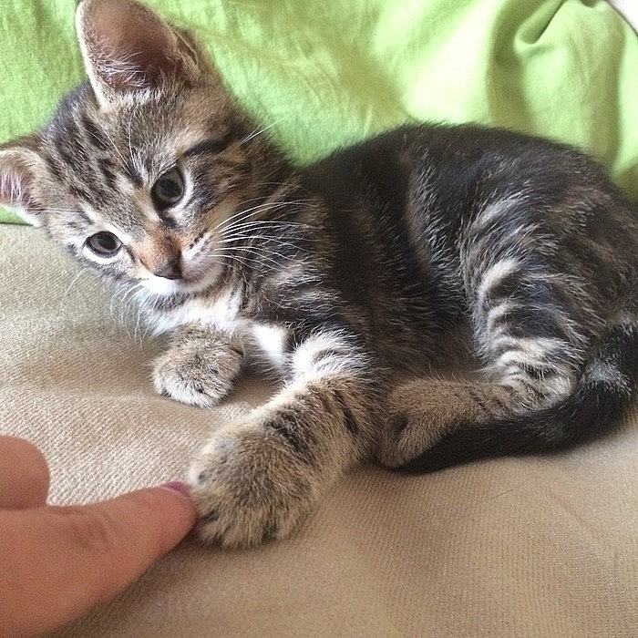 Nabízíme velice kontaktní koťátko mazlené dítětem. Samo papá granulky i kapsičky pro koťátka sebou je dostane také.