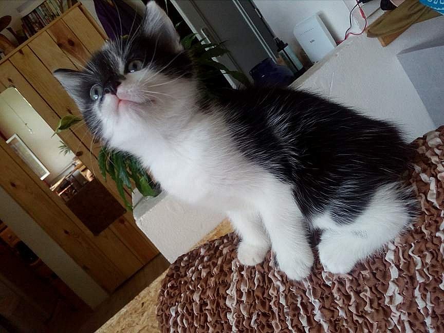 Asi 3-4 měsíce stará kočička, hodná, čistotná, rozvakcinovaná. Tel.: 777214680