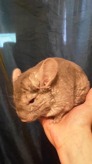 prodám samečka činčily (barevná varianta white ebony) stáří 5 let. Zvyklý na ruku, ale není úplně ochočený. Je zvyklý na běžný ruch domácnosti i cestování.