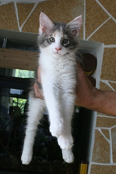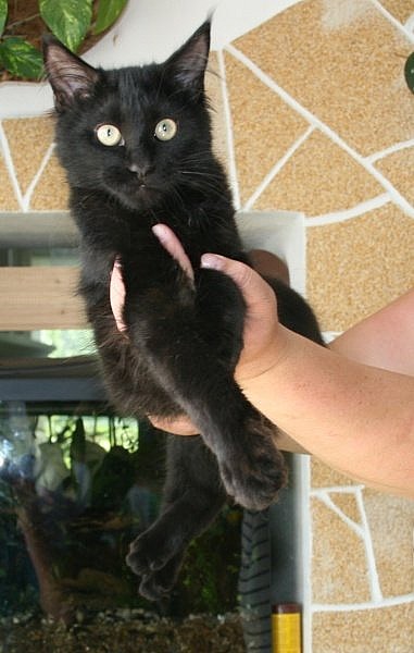 Mainská mývalí. Chov. st. Pábení nabízí koťátka s PP, obříky. 2 černí kocourci - Marlin; Marlon - velký, vhodný pro chov; modrobílá kočička Mája; modrokrémová kočička s bílou Madelain - zde přednost zájemcům na chov. Dále nabízím 5,5 měsíčního černého XXXL kocourka Leonarda, pohodáře, mlsouna. Koťátka vyrůstají v rodinném prostředí, jsou přítulná, hravá a mlsná. Koťátka jsou očkovaná, přeočkovaná, s očkovacím průkazem, odčervená, odblešená, zvyklá na psa i děti. Dostanou malou výbavičku.