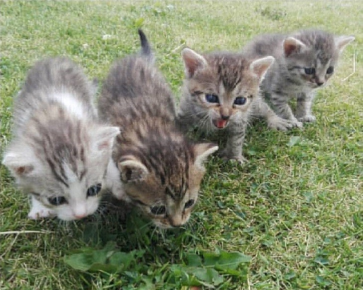 Daruji 3 krásná koťátka nar. 20.6.2017 v CHKO Moravský Kras - 2x mourovatá kočička + 1x mourovatý kocourek s bílou; čistotná, naučená na kočičí WC; zvyklá být hlavně venku; odběr možný ihned