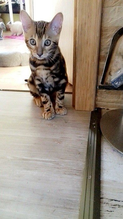 Prodám čistokrevná koťata po rodičích s PP-koťata -bez PP-očkovaná,načipované,pravidelně odčervovaná,čistotná,mazlivá-odchovaná v rodině s dětmi.Odběr možný od 15.9.2017,-koťata narozena 7.6.2017.Výběr 3 x tečkovaná kočka ( Fiona,Felindra,Flora),1 x kocourek mramorovaný -velký mazel-(Felix). Dohoda.