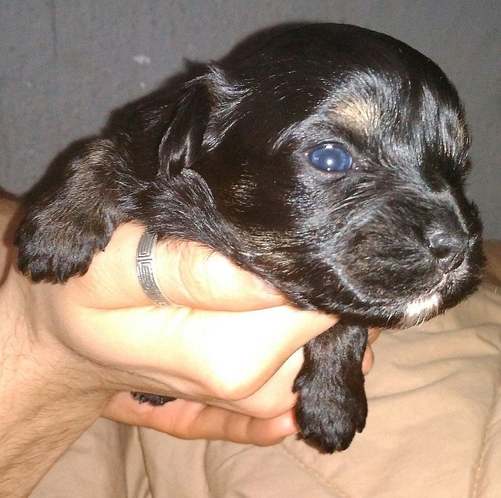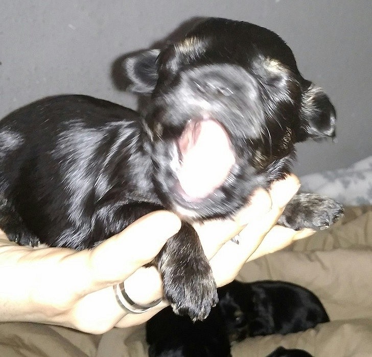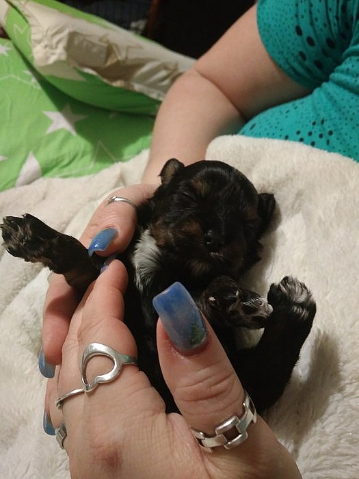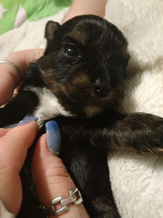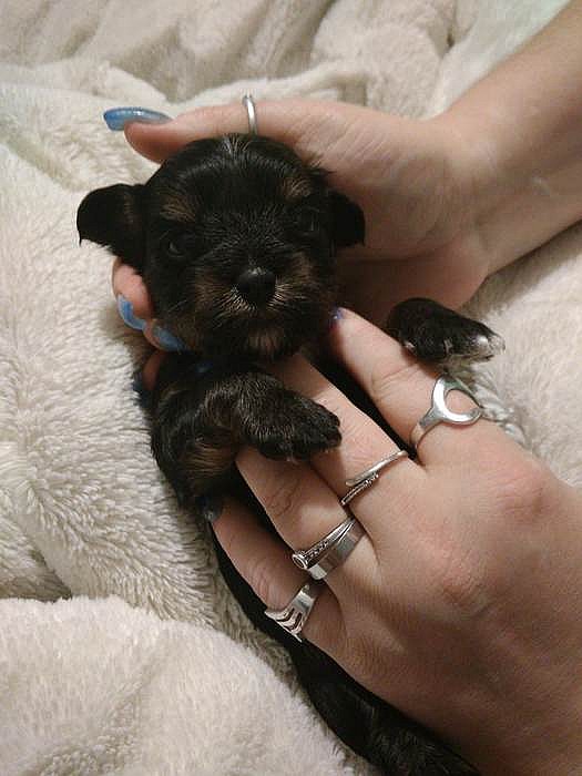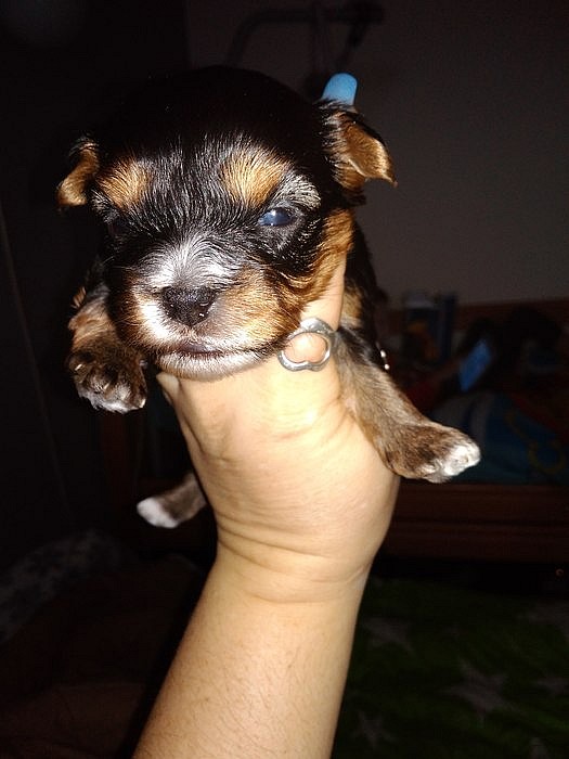 Nabízím k zamluveni štěňátka barevného yorksirskeho teriéra, narozena 7.12, k odběru od 1.2.barva štěňátek Black And Tan. Maminka Choccolate, tatínek Biewer tricolor. Oba rodiče s PP, štěňátka bez PP. Nezávazná návštěva vítána, maminka i tatínek 3kg,máme 2 fenečky a 2 pejsky.Kralupy nad Vltavou.