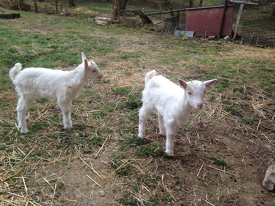 Prodám 2 bílé kozlíky, nar. 18.3.2018, k odběru ihned (600kč/kus).