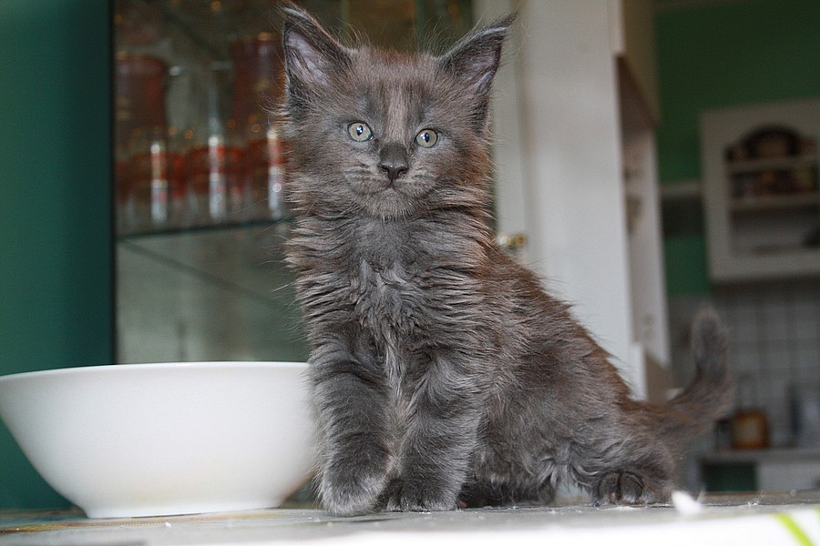 Pro modrou, mainskou mývalí kočičku hledám domov.