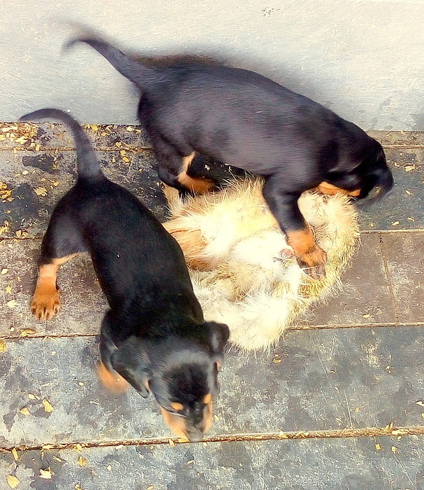 Zadám poslední štěňata slovenského kopova bez PP ze spojení po pracovně výborných rodičích s PP. Rodiče celoročně využívaní na černou zvěř i ostatní vysokou zvěř.Štěňata budou řádně odčervena, čipována. Smlouva nedílnou součástí.