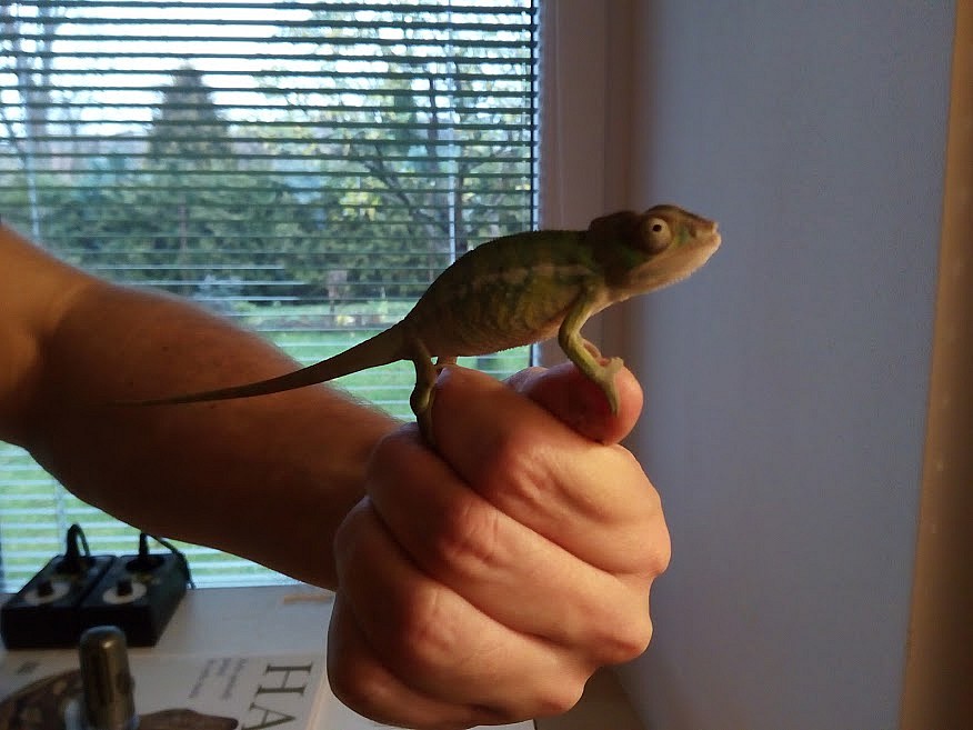 Prodám mláďata Chameleona pardálího Ambilobe, stará 3 měsíce, velikost 8-9 cm v těle. Samička za 800,- a samečci po 1700,-.
