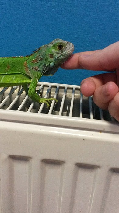 Prodám menší samičku Leguána zeleného. Leguán je přátelský a zvyklí na ruku, ale ze začátku je plachá. Má ukousnutý konec ocasu který už dorůstá, po konfliktu se svým sourozencem, jinak zdravá.