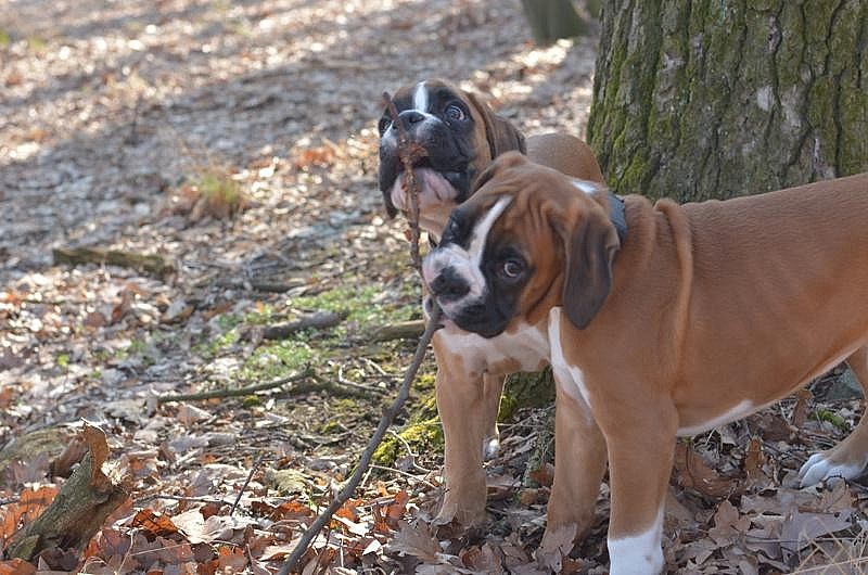 V nabídce dva krásní zlatí kluci s PP. Zahraniční krytí, jejich rodokmen se pyšní současnými TOP boxery z celé Evropy. Velmi zajímavé spojení s předpokladem velmi temperamentní povahy pro sportovní kynologii, výstavy i do chovu. Matka CH. Amalka od Ivetky DCH (v. Fausto de Val de Cayone) – Ch CZ, RO, BOB, CAC. Zkoušky: IPO2, světová vítězka ATIBOX FH 2017 Fpr1, Otec: Capo de Tutti Capi Rus la Fler, temperamentní mladý pes CWC, CAC, BOB, CACIB, r.CACIB.