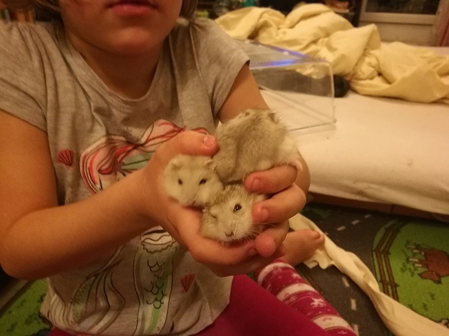 Daruji 3 mláďata křečka džungarského. 5 týdnů stará, zvyklá na ruku.