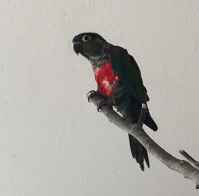 Prodám Pyruru perlatu, *2016, samec, nejlépe někomu se zkušenostmi. Částečně ochočený. Možno i s klecí.