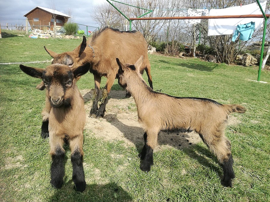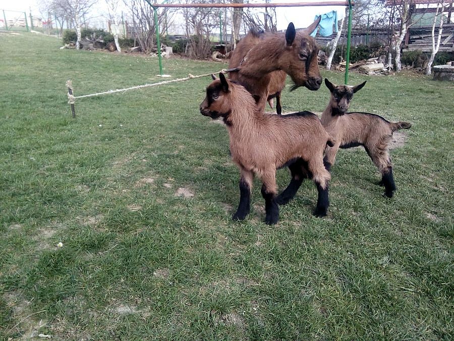 Prodám kůzlata od hnědé krátkosrsté kozy, kozička za 800 Kč, kozlík za 600 Kč