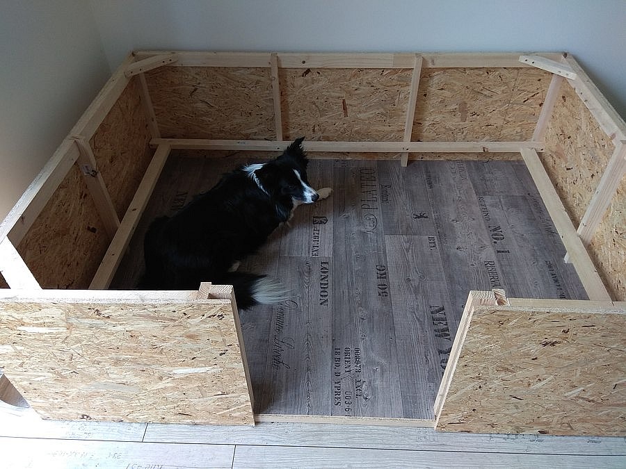 Prodám porodní bednu-box pro štěňata. Rozměry 1700x1300x500 mm. Vyrobeno z OSB desek s podlážkou a zábranami proti zalehnutí štěňat fenou. Vhodné pro střední a velká plemena. Jednou použito. Pouze osobní odběr.