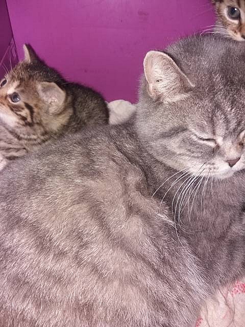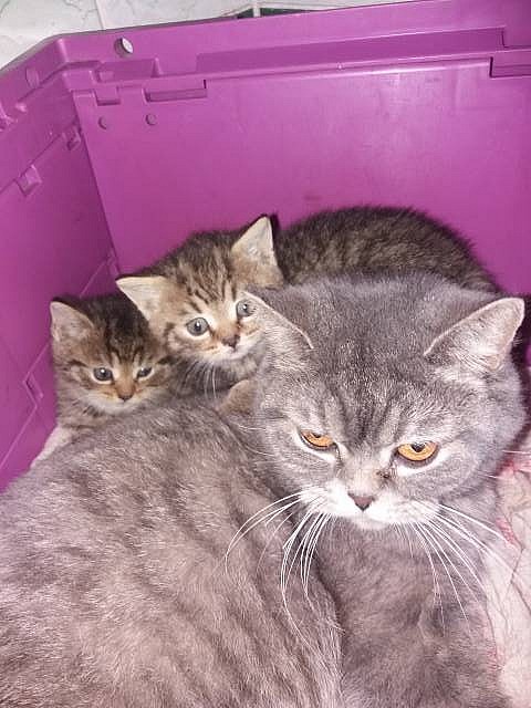 Prodám britská koťátka, narozená 1.4.2019, chovaná v bytě, zdravá, s veterinární péčí, očkovaná. Naučená na kočičí WC, velice čistotná. Krmená superprémiovými granulkami Taste of the wild, ale nepohrdnou ani kapsičkou, libovým vařeným masíčkem nebo jiným pamlskem vhodným pro jejich živočišný druh. Koťátka jsou zvyklá na malého pejska. Na fotografii jsou se svou matkou. K odběru ihned.