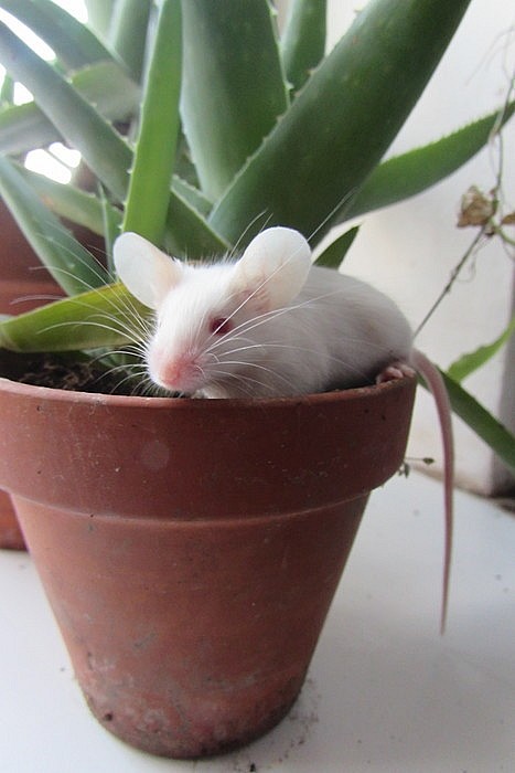 Myšky bílé i barevné, k chovu nebo ke zkrmení, různé velikosti, dospělí, skákavky, občas holata. Cena 10-30 Kč.