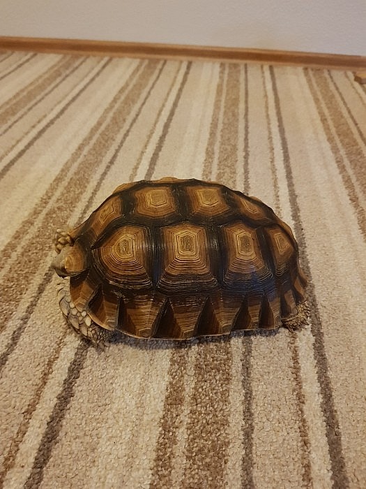 prodám 5 letou želvu ostruhatou (samec). Vzrůstu 21x16,5 cm. Želva je naprosto zdravá. Velice pěkný, pravidelně klenutý krunýř. Důvod prodeje - nemám pro ni dořešený prostor. Možná výměna za 2 mláďata ( ž. uhlířské, pardálí, nebo 1 x paprsčité. Želvu prodám/vyměním jen do dobrých rukou, nejlépe chovatel. Při rychlém jednání dohoda jistá.