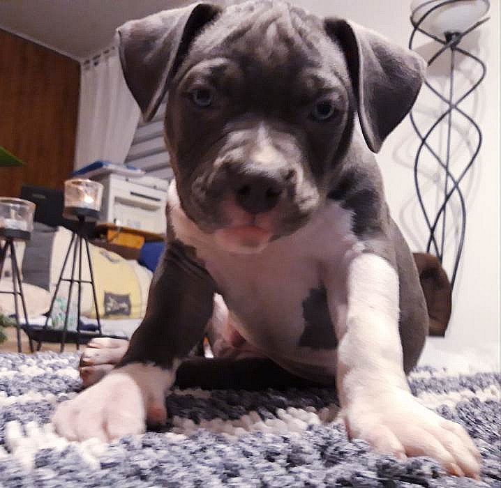 Chovatelská stanice Bullpet zadá štěňata american bully modro bílé barvy po importovaných rodičích. Silně kostry , vyrovnané povahy. Očkování, EU pas, odčerveni, poslech srdíčka v pořádku. Smlouva samozřejmostí. Vhodní pro výstavy i jako mazlík. Nyní k odběru.