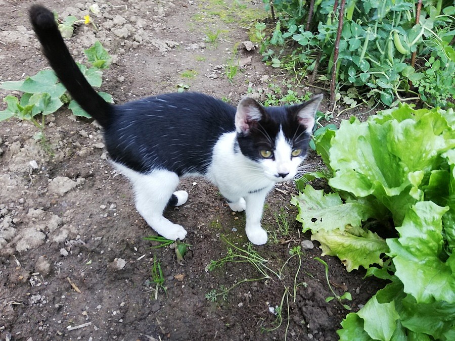 černého kocourka nebo černobílou kočičku. Narozená 28.3. Zvyklá na pobyt doma i venku, i na další domácí zvířata.