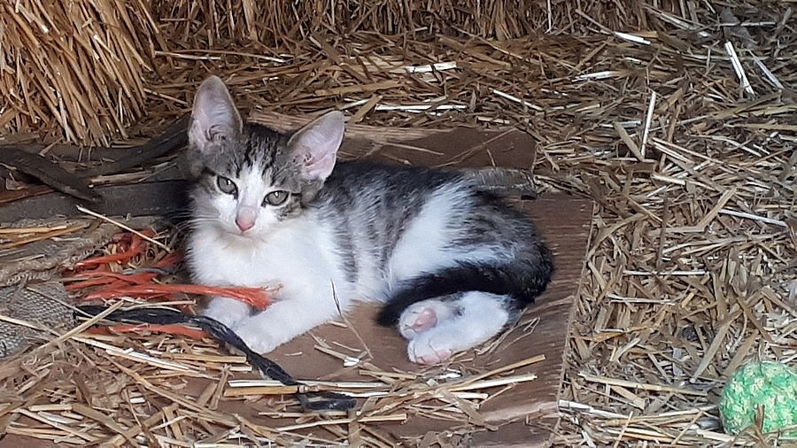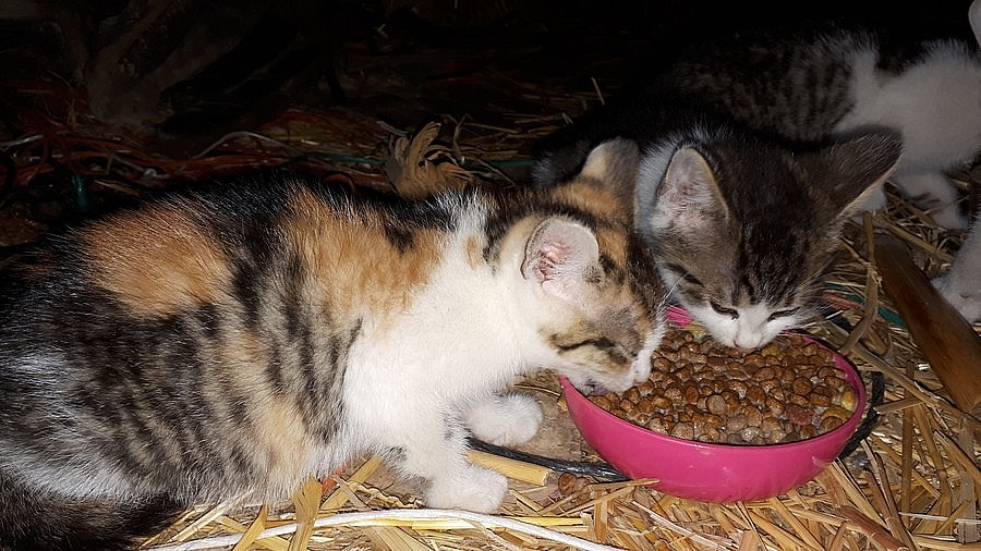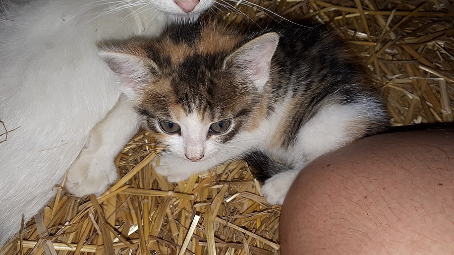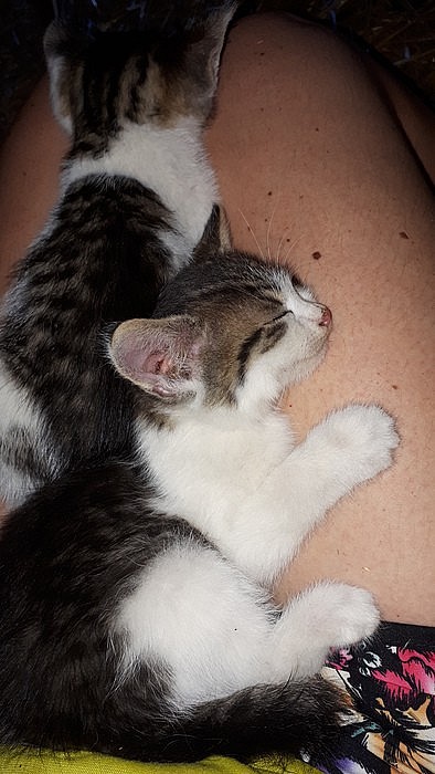 Darujeme koťátka do dobrých rukou: 1 bílo-zrzavo-mourovanou kočičku a 3 bílo-mourované kocourky (další na fotce, černo-bílo-zrzavá kočička už je zamluvená).