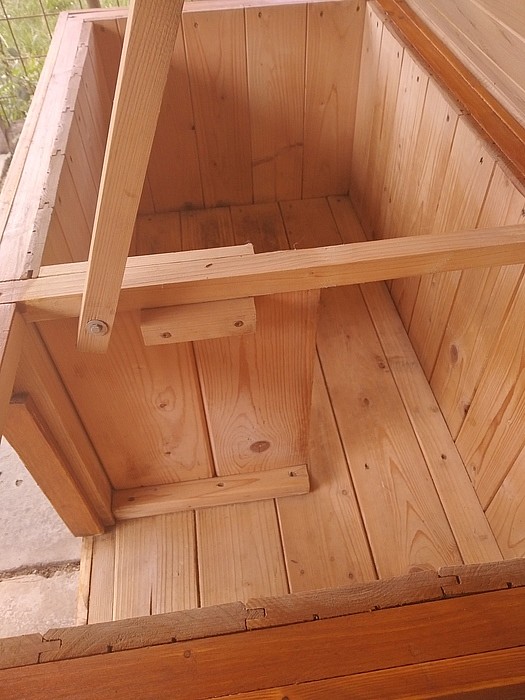 Vyrobeno s překližky. Lepeno nezávadným lepidlem pro zvířata. Rozměry-šířka a výška 30 cm, hloubka 13 cm. Možnost vyrobit i jiné rozměry. Cena bez plastového wc.