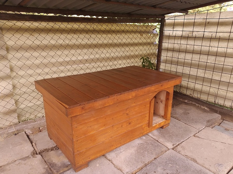 Prodám zachovalou, málo používanou psí boudu pro střední plemena. Bouda je zateplená polystyrenem (včetně střechy a podlahy). Je rozdělená na dvě místnosti oddělené přepážkou. Střecha je zvedací s podpěrou pro snadné čištění. Bouda je kompletně ze dřeva, kostra z hranolů a vše ostatní z palubek. Bouda stojí na nožičkách, aby dno boudy neleželo ve vlhku. Bouda je letos nově natřená odstínem borovice.
