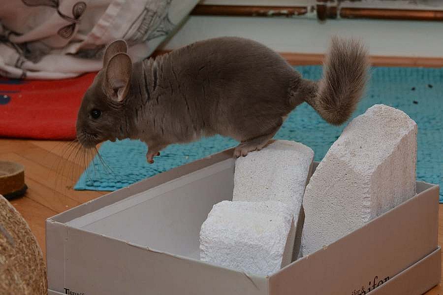 prodám samečka činčily (barevná varianta white ebony) stáří 5 let. Zvyklý na ruku, ale není úplně ochočený. Je zvyklý na běžný ruch domácnosti i cestování.