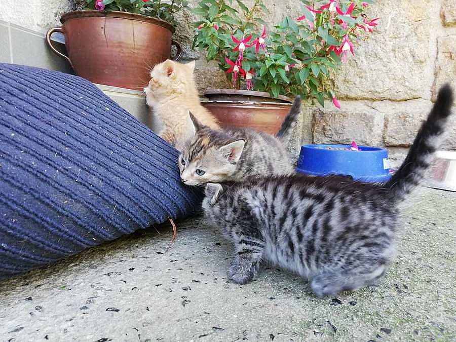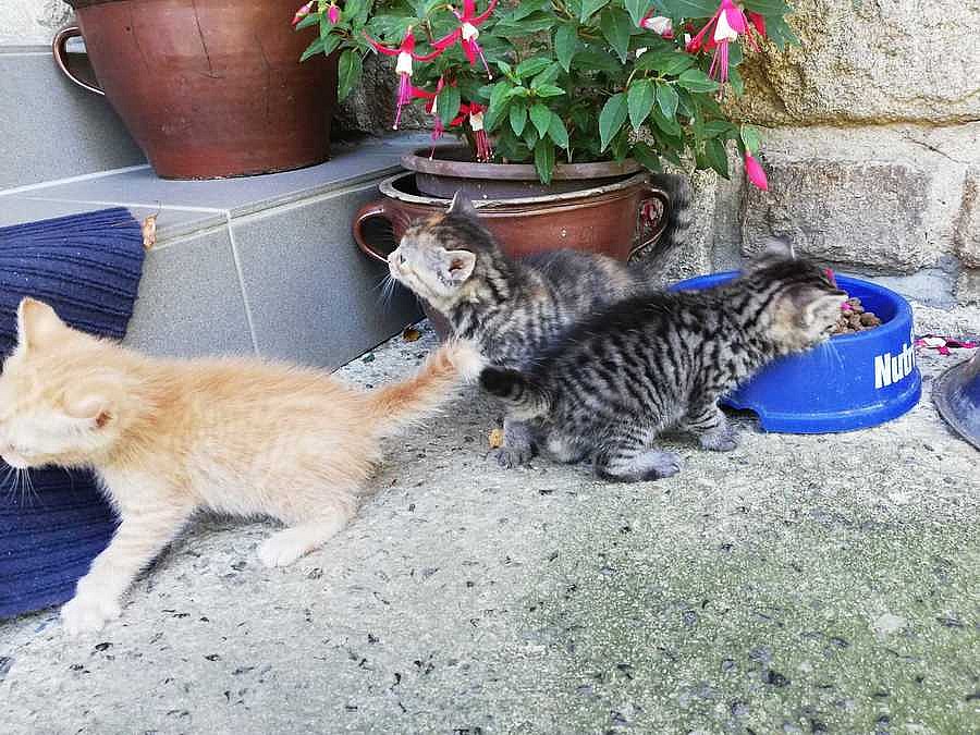 Nabízíme tři koťátka. Rezavého kocourka a dvě mourovaté kočičky narozené 2.9. 2020. K odběru budou od 11.11.2020. Záleží na domluvě. Začínají sama baštit, na kočičí záchod už umí. Při odběru budou odčervená. Samozřejmě je nabízíme i jednotlivě a zdarma. Můžeme vám poslat i víc fotek vámi vybraného kotěte, případně si můžete přijet vybrat a zamluvit. Inzerát platí do smazání