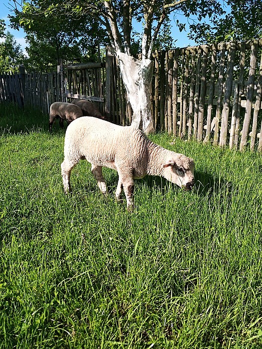 Prodám jehně Amálku Narozena 10.5. 2025 Otec Kerry Hill, matka křížená Kerry Hill s Kamerunkou. Ovečka je zvyklá na lidi a jiná zvířata. Tel.: 775 279 132