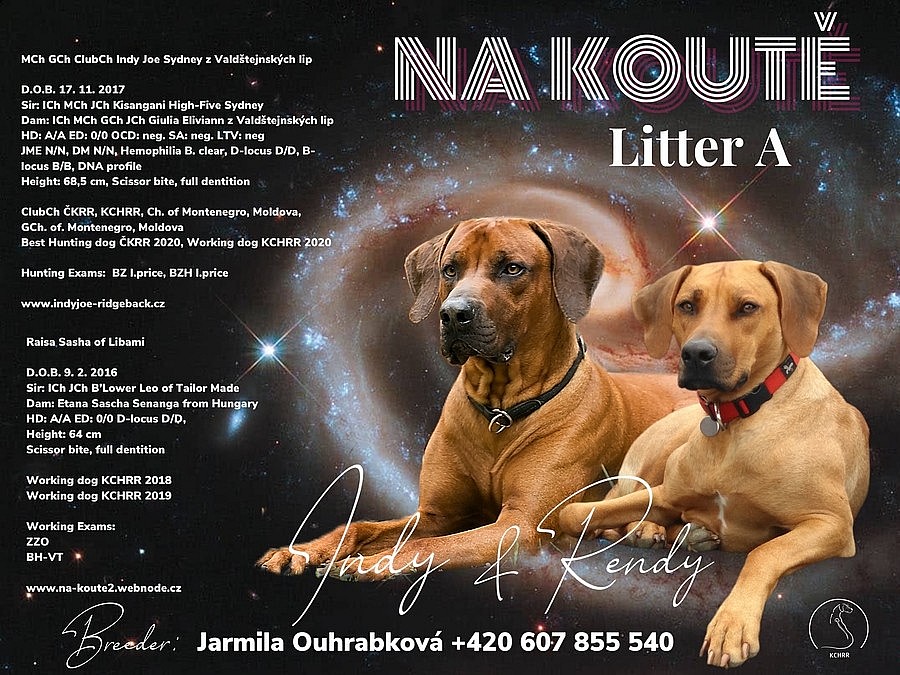 Chovatelská stanice Na Koutě, nacházející se na semilsku, přijímá rezervace na štěňátka z vrhu A ze spojení rodičů s krásným exteriérem, s vyrovnanými povahami. Oba rodiče jsou pracovně vedení. Matka, Raisa Sasha of Libami, má zkoušky ovladatelnosti psa. Otec, Indy Joe Sydney z Valdštejnských lip, má lovecké zkoušky. Štěňátka se měla narodí na začátku měsíce července, k odběru by měla být na konci měsíce srpna. Štěňátka budou plně socializovaná, zvyklá na děti a obvyklý provoz domácnosti. Štěňátka budou mít test paternity. Hledáme pro ně milující majitele, kteří jim poskytnou lásku a péči. Samozřejmostí je smlouva a chovatelský servis. V případě zájmu nás neváhejte kontaktovat na email: rendy090216@gmail.com nebo na tel. čísle 607 855 540. Více informací najdete na našich stránkách www.na-koute2.webnode.cz