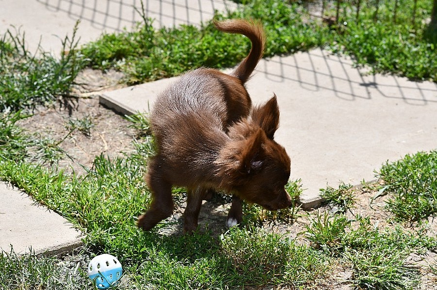 čivava dlouhosrstá s PP pejsek čokoládové barvy
