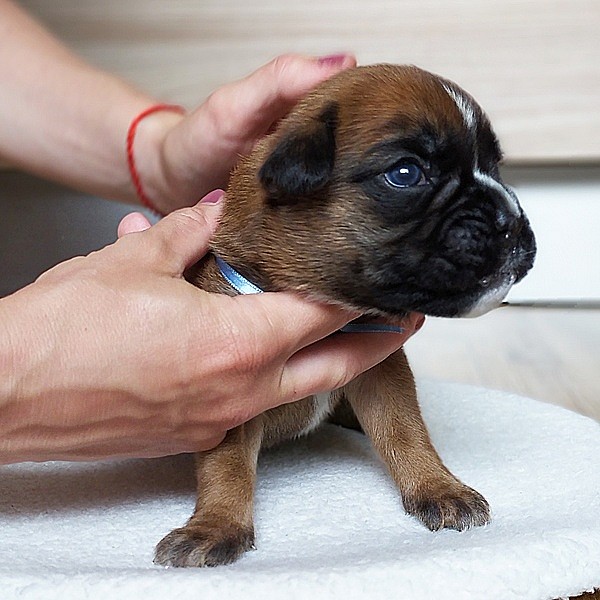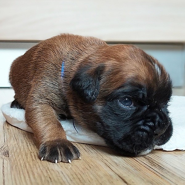 Z vrhu narozeného 26. 6. 2021 (4 psi a 4 fenky) nabízíme 2 zlaté pejsky. Oba rodiče jsou s PP, štěňata bez PP. Vybrat si můžete ze 4 pejsků na fotografiích nebo ve fotogalerii na https://www.stenata-boxer.cz. Štěňata budou při odběru odčervená, očkovaná, čipovaná a nekupírovaná (odběr po 21. 8. 2021). Návštěva a prohlídka štěňat vítaná.